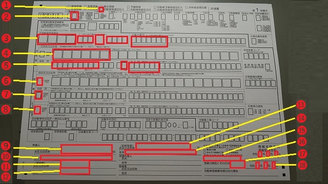 ➌【㉑自動車登録番号】はナンバープレートの番号