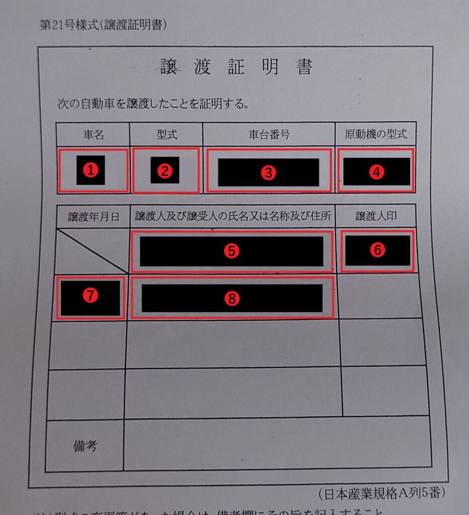 僕は譲渡年月日と譲受人の氏名と住所を記入しました。
