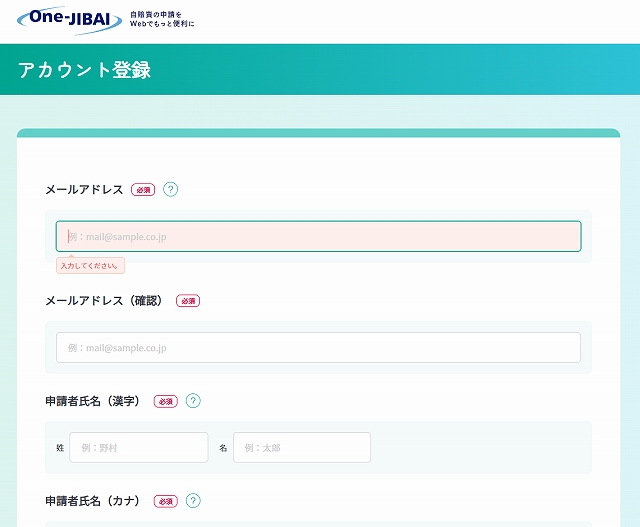 入力完了後、【アカウント登録確認へ】ボタンを押します。