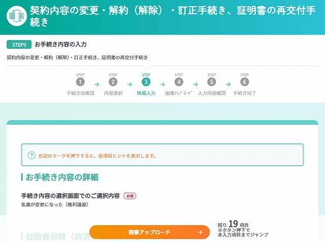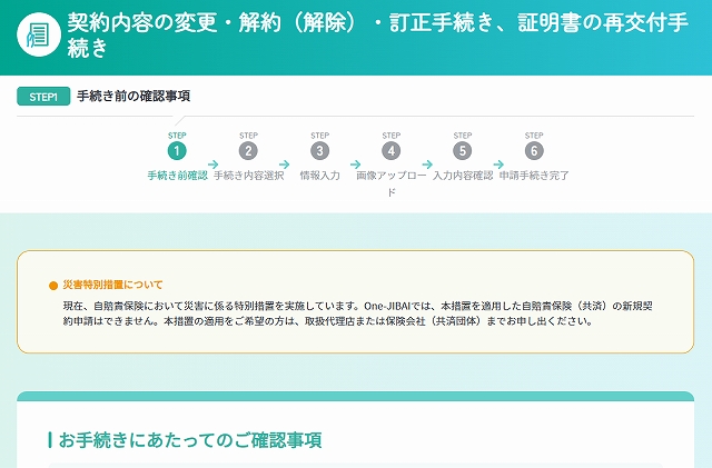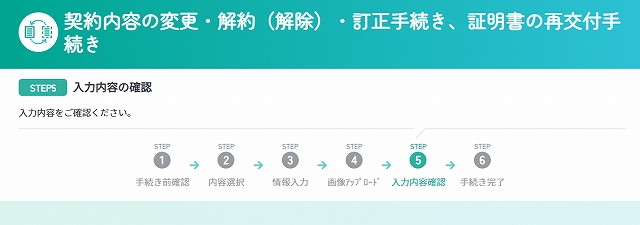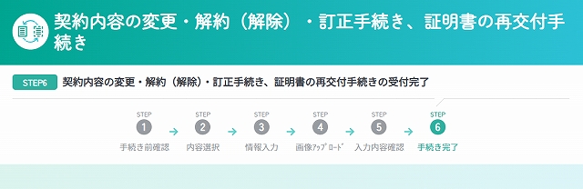 STEP6:契約内容の変更・解約(解除)・訂正手続き、証明書の再交付手続きの受付完了
