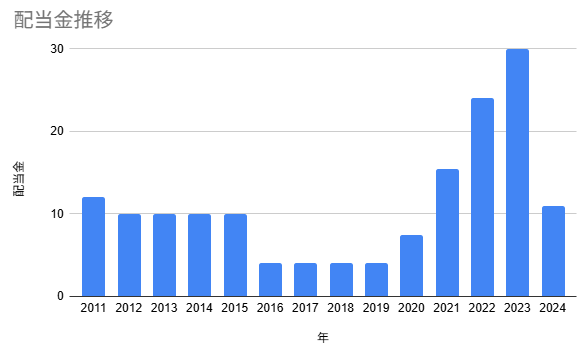 100株保有していれば、年間で1,100円の配当金を受け取れます。