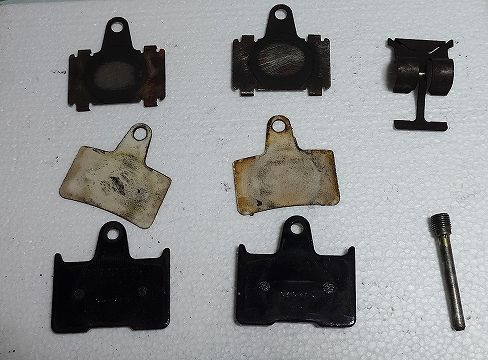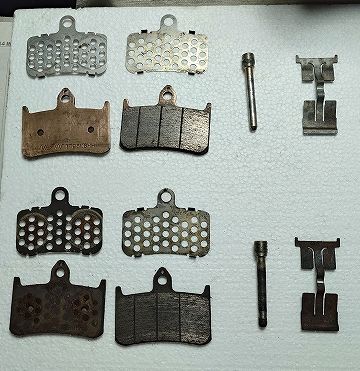 偏摩耗なのか溝が残っているパッドもありますが、いずれ全部交換します。