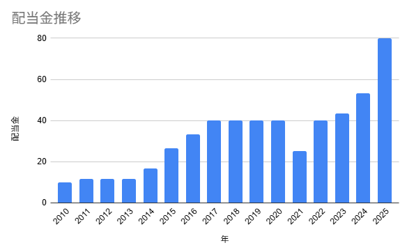 2025年の配当金は1株あたり80円でした。