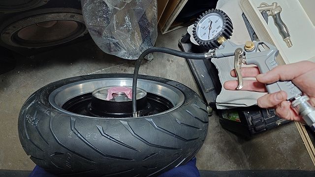 「パンッ、パンッ」と2回破裂音がして、ビード上げ完了です。