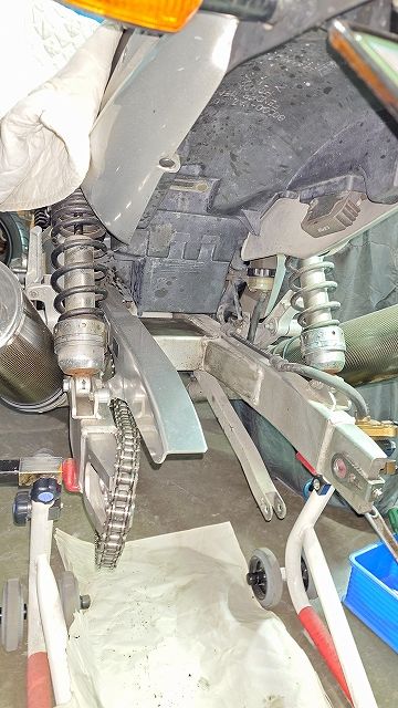 このチェーンを左のスイングアームにかけてあるのが、ミスポイントでした。