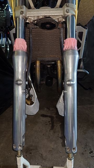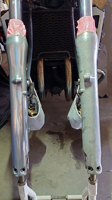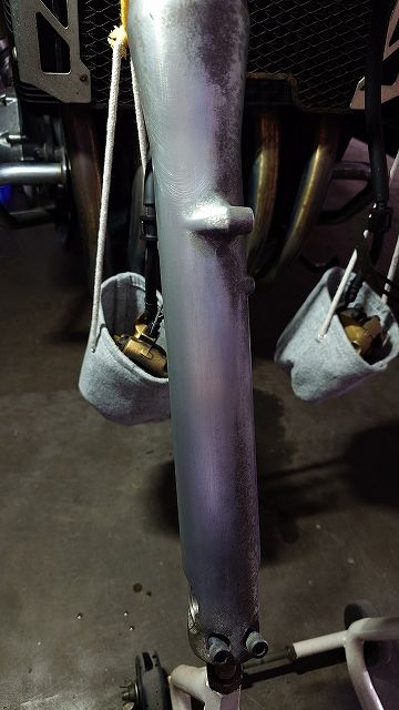 タイヤ交換作業のついでに、フロントフォークを半鏡面仕上げにしてみました。