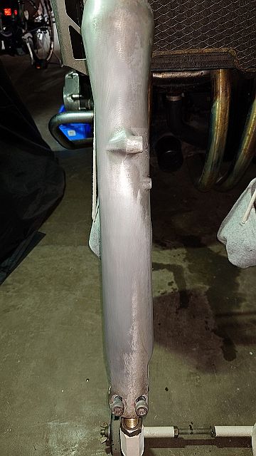 左フロントフォークと比べると、ポツポツはなくなり、だいぶきれいになりました。