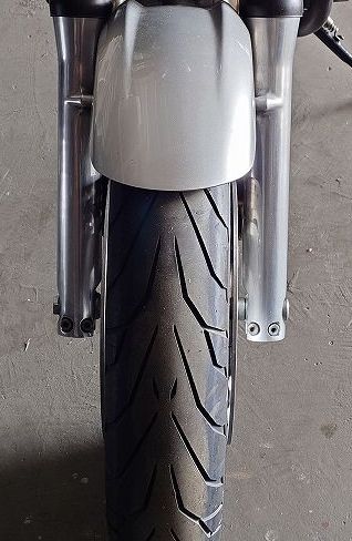 車体のシルバーとの相性も良く、フロントフォークの半鏡面仕上げは正解だったと思います。