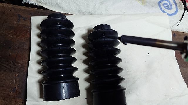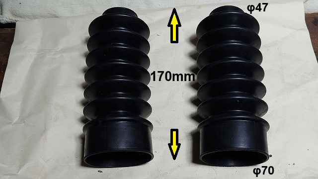 普通の割れていないフォークブーツ(上側49mm、下側65mm)