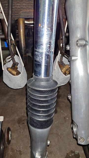 オフロードバイクでは一般的なフォークブーツを、X4に付けてみました。