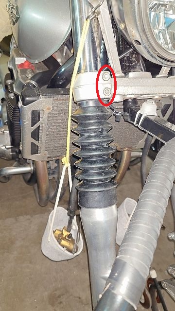 割れていない普通のフォークブーツを選んだので、フロントを持ち上げて、フロントフォークを抜く必要があります。