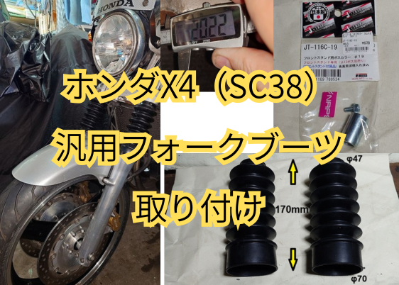 ホンダX4(SC38)に汎用フォークブーツをサイズ計測して取り付け|おバイクの作法