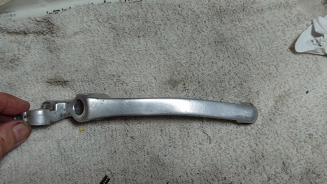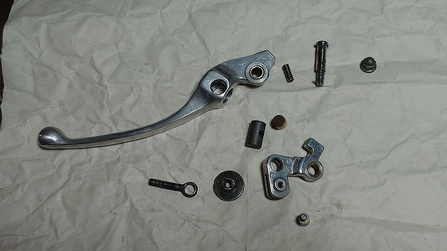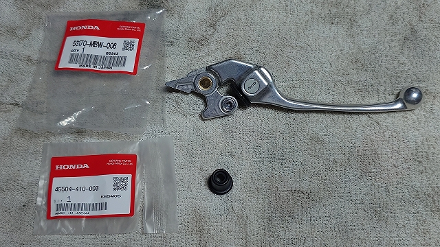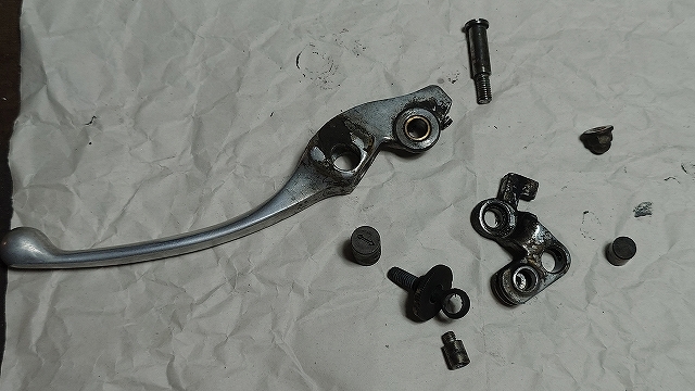 ブレーキレバーは曲がっていると聞いていたので、新品に交換します。