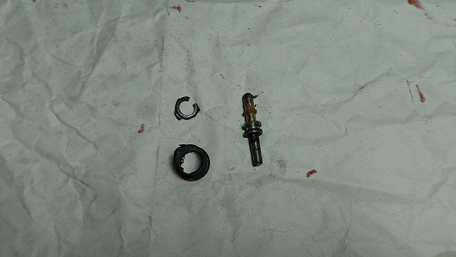 クラッチレバーを外すとピストンピンが見えましたが、根本のラバーがボロボロでした。