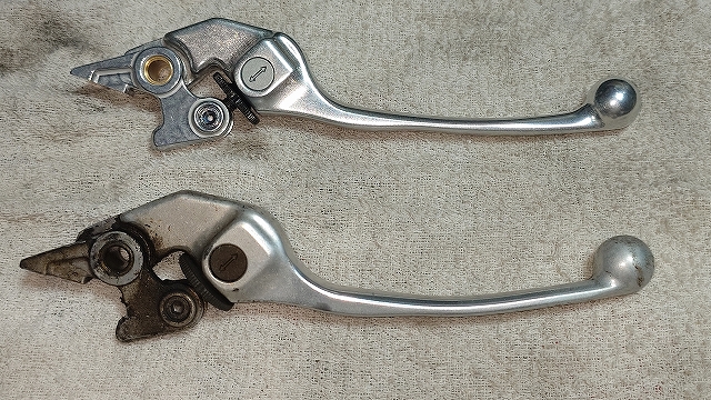 取り外したブレーキレバーと新品ブレーキレバーを比較します。