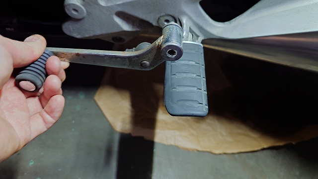 またハンドルグリップ同様にゴム部品のステップラバーを交換します。