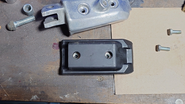 ステップラバーとプレートの穴位置が合っているこの状態で、ステップ本体をかぶせれば、ボルトを締めることができました。